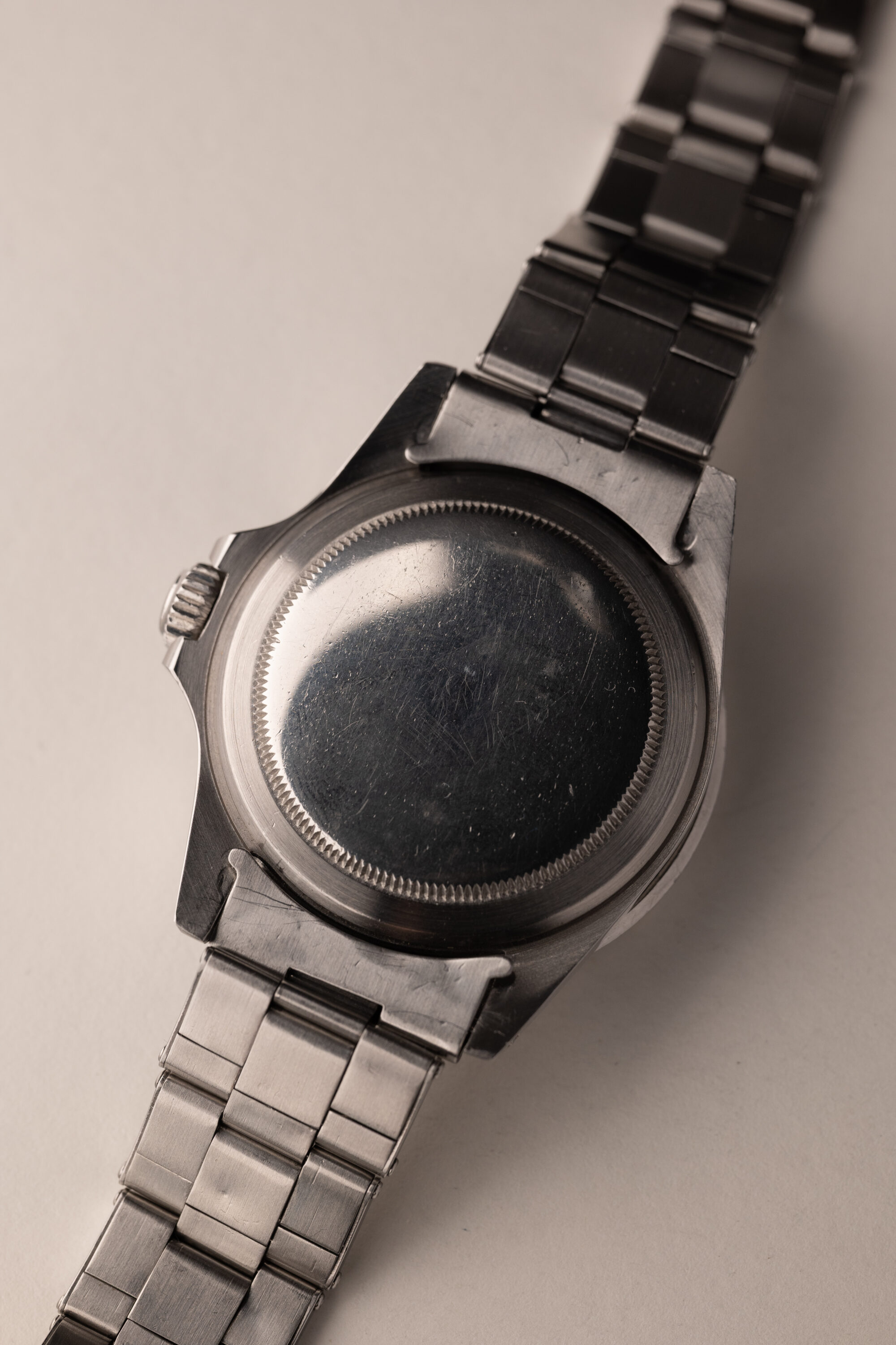 Description: Well we don’t see this type of 5512 very often. This variant goes by many names, “Day-Glow” because the lume uses a mixture of tritium and zinc sulfide which allows it to continue to glow today. These are seen only in 1967. Of these, some 5512’s are also what we consider a “neat-font” example which simply means that the 4 lines of text are uniform and are used in one stamping vs the standard 4 lines that came after where we see two stampings… the first 2 lines are generally thicker than the bottom 2. Watch appears unpolished and dial mint with a ghost bezel insert. Correct bracelet and all the good stuff.