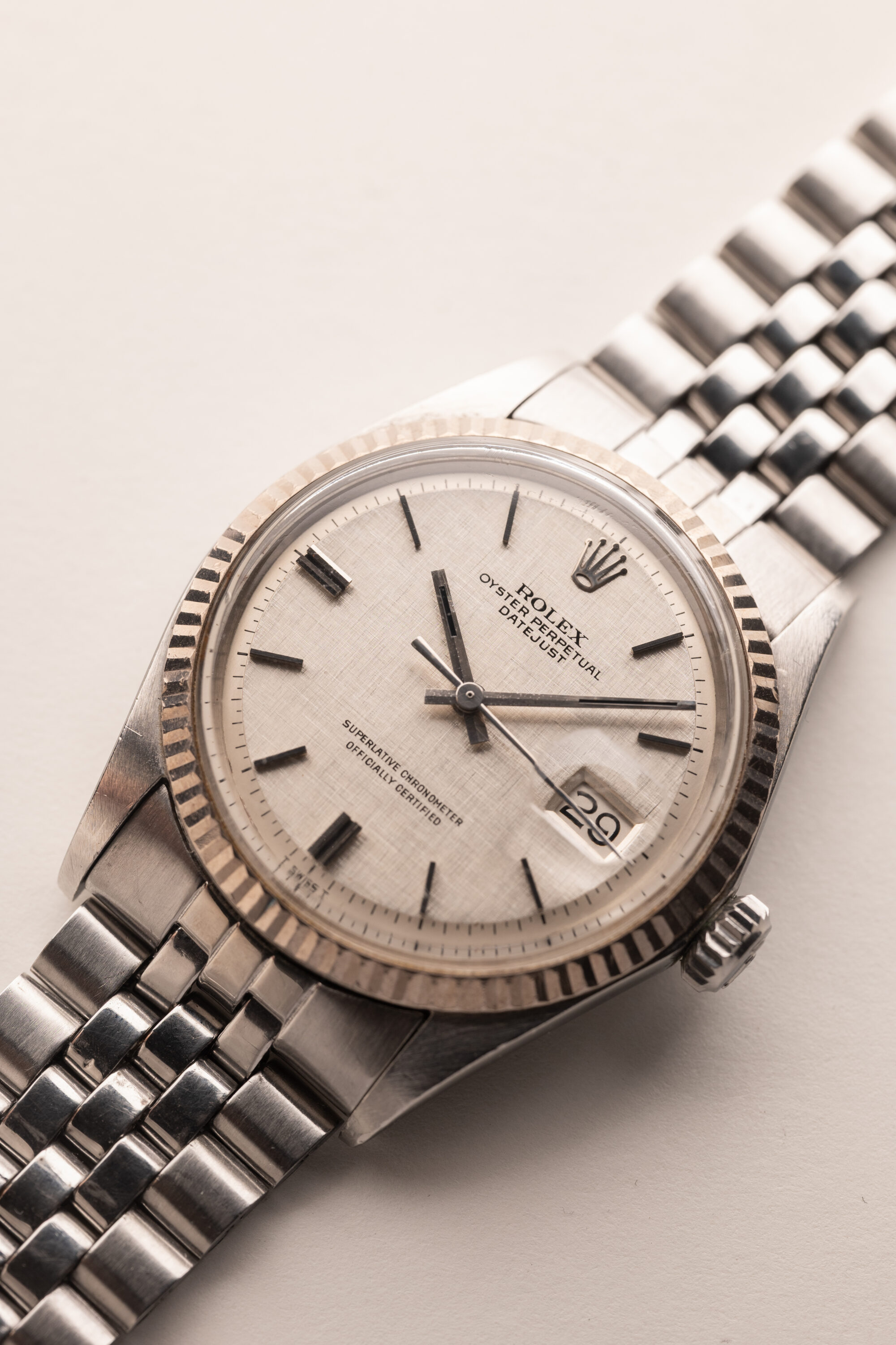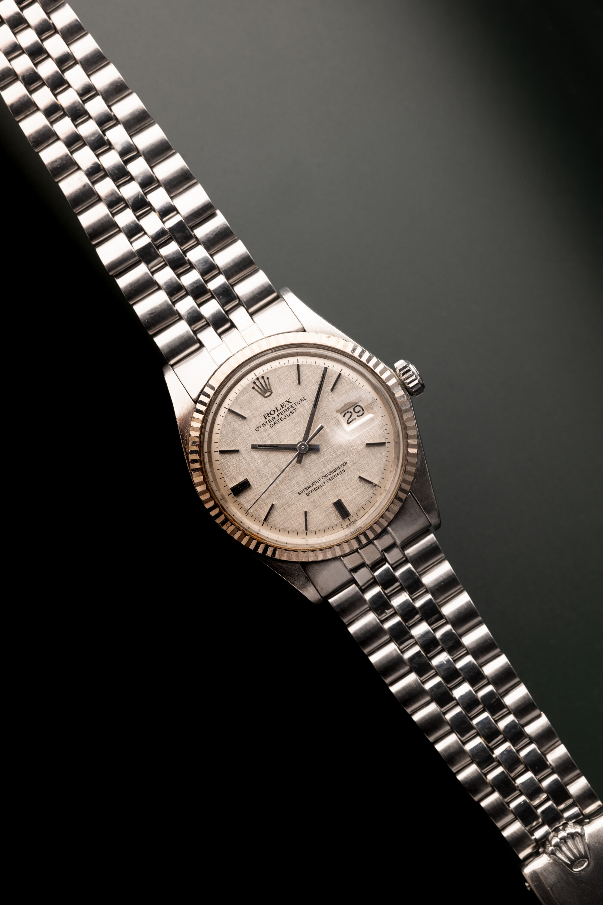 Description: The 1601 is the classic everyday Datejust. the 36mm sized case wears casually or formal depending on one’s attire. What makes this very unique is the onyx indices and hands inlayed within the white gold. These dials and hands were originally made without any lume.