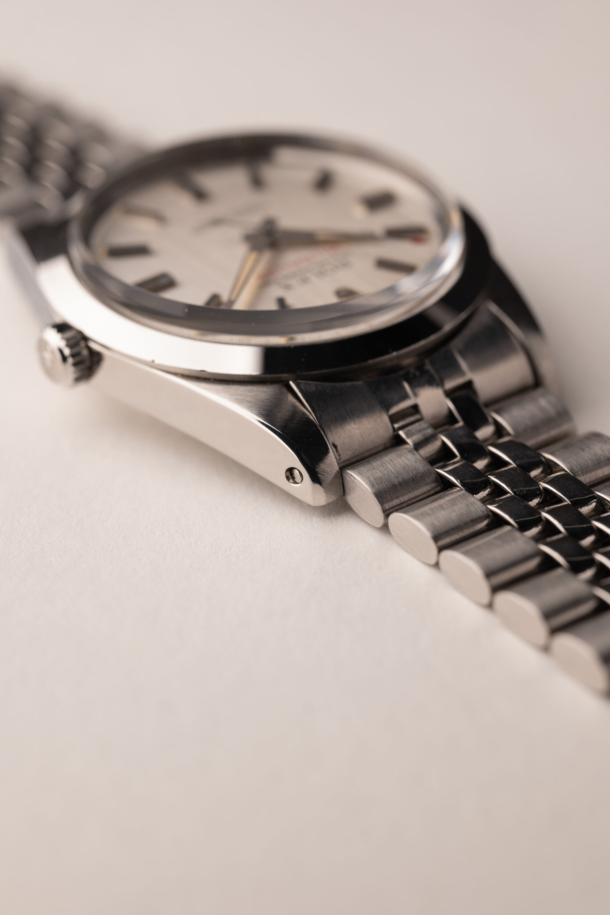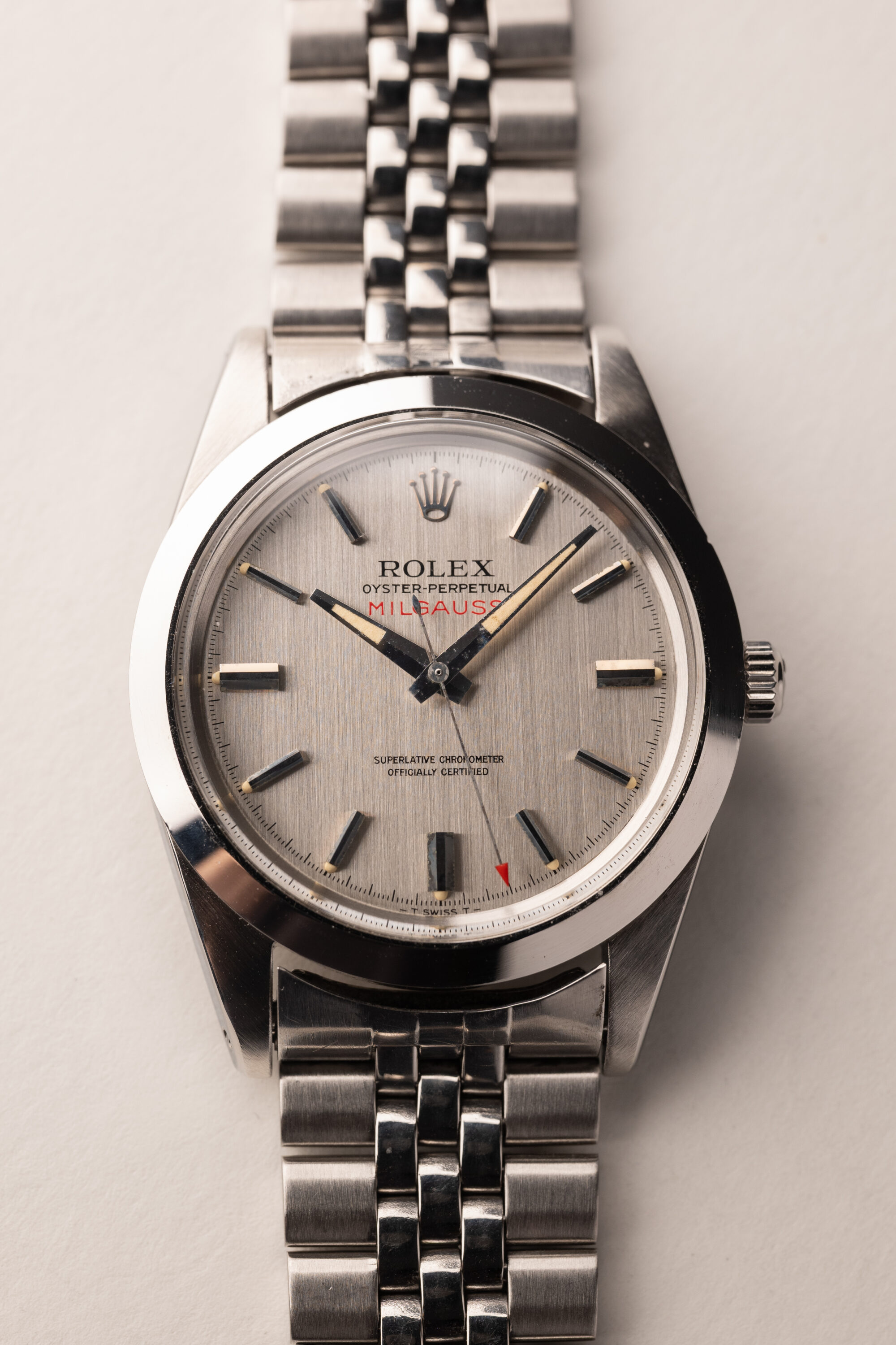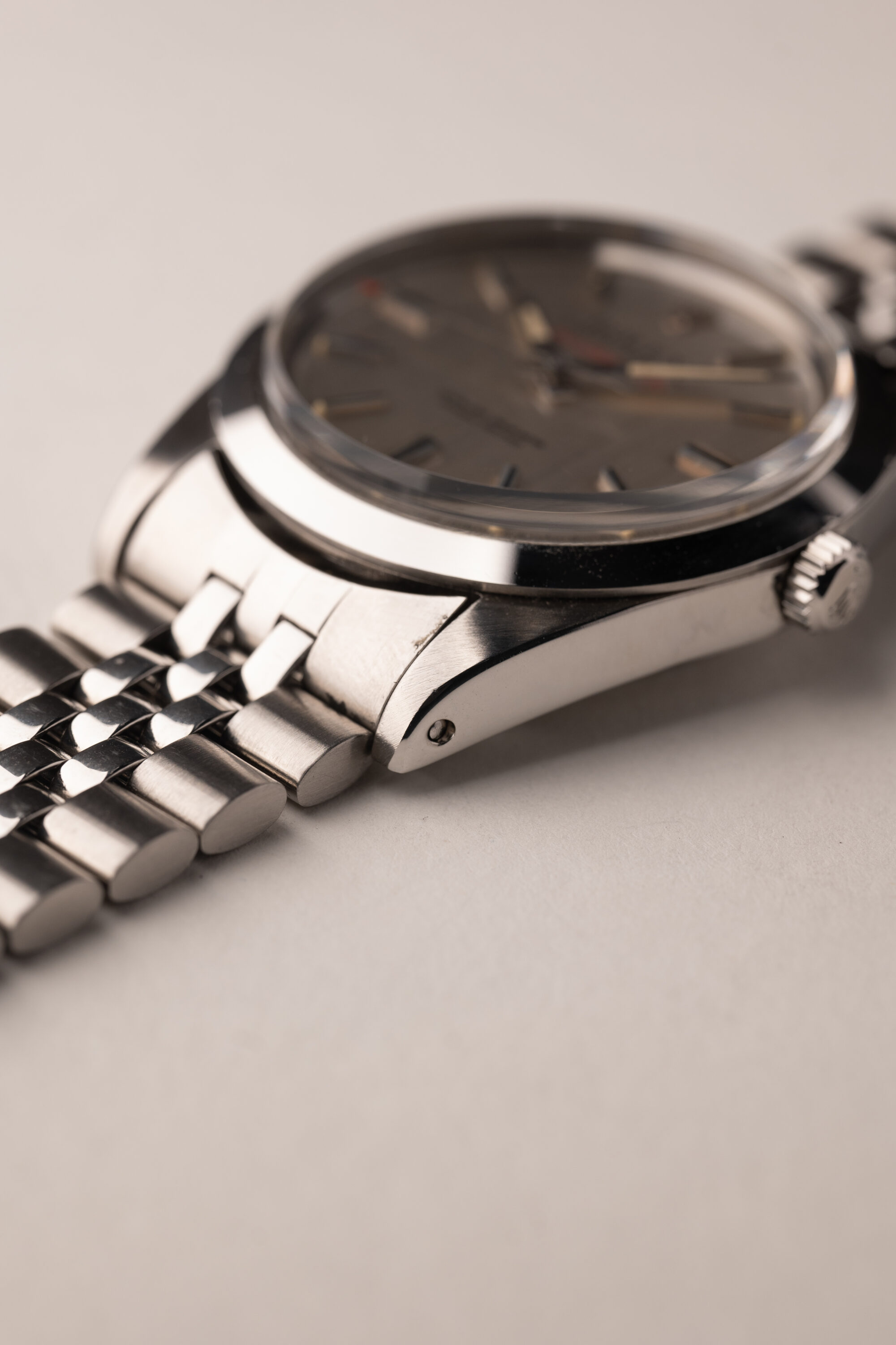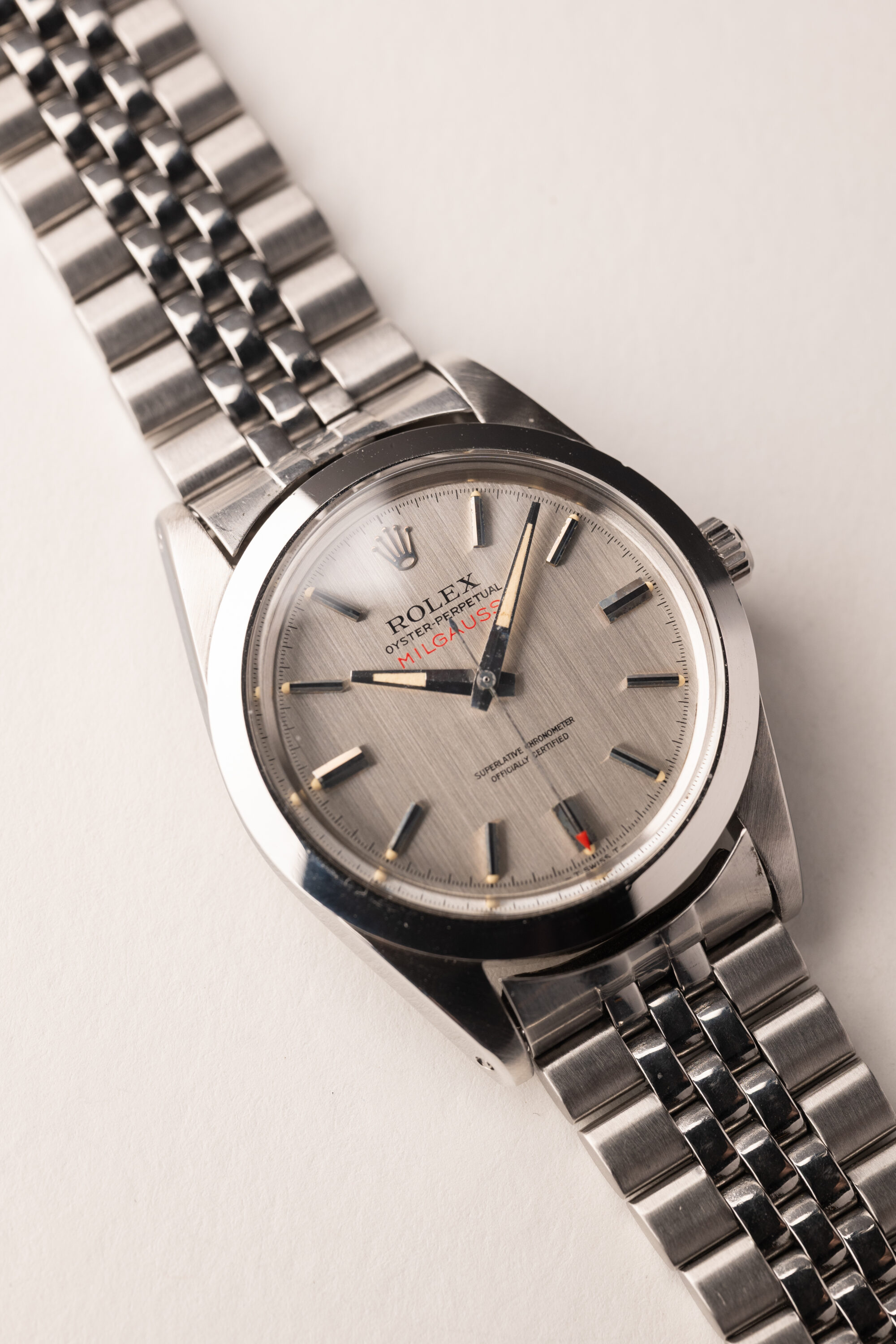 Description: Rolex’s 1019 is a second generation Milgauss, a watch most enthusiasts are very familiar with. Released years after the original 6541, the Milgauss was designed to withstand electromagnetic forces up to 1000 gauss. The watches of engineers, technicians, working with such forces would have their time altered and so Rolex, introducing a Faraday cage, sought to limit such adverse effects. This example has a stunning brushed silver dial with a pop of light yellow lume.