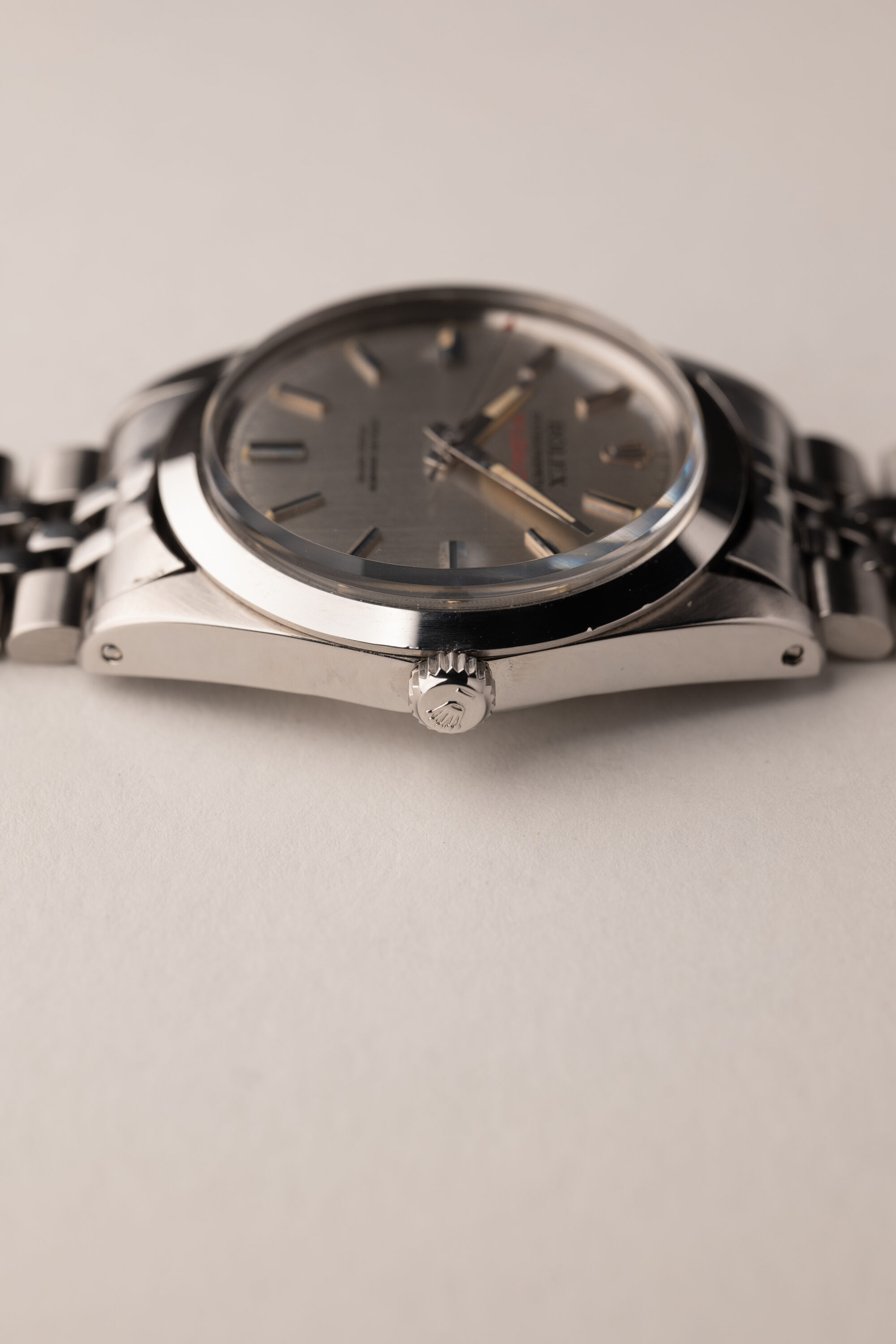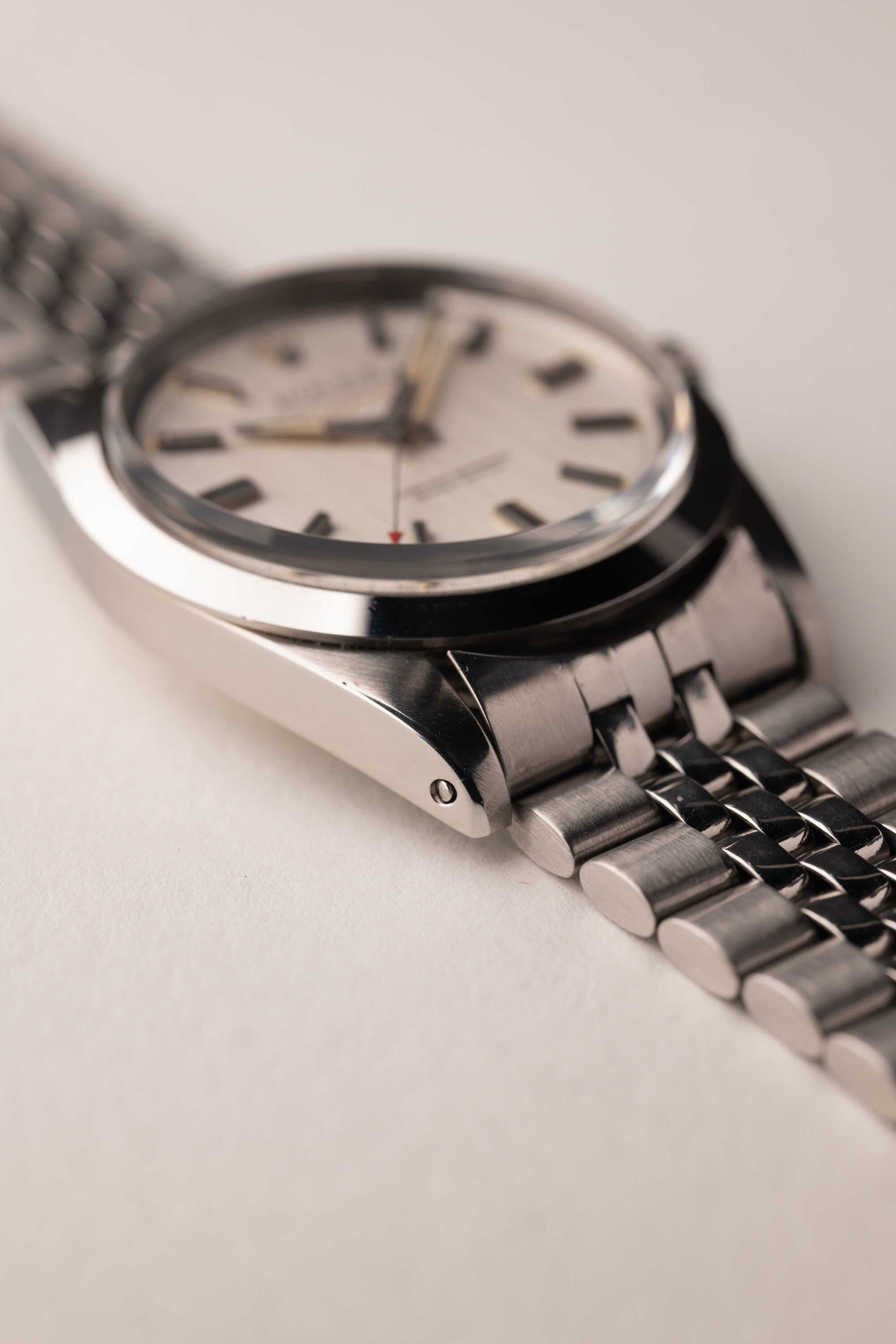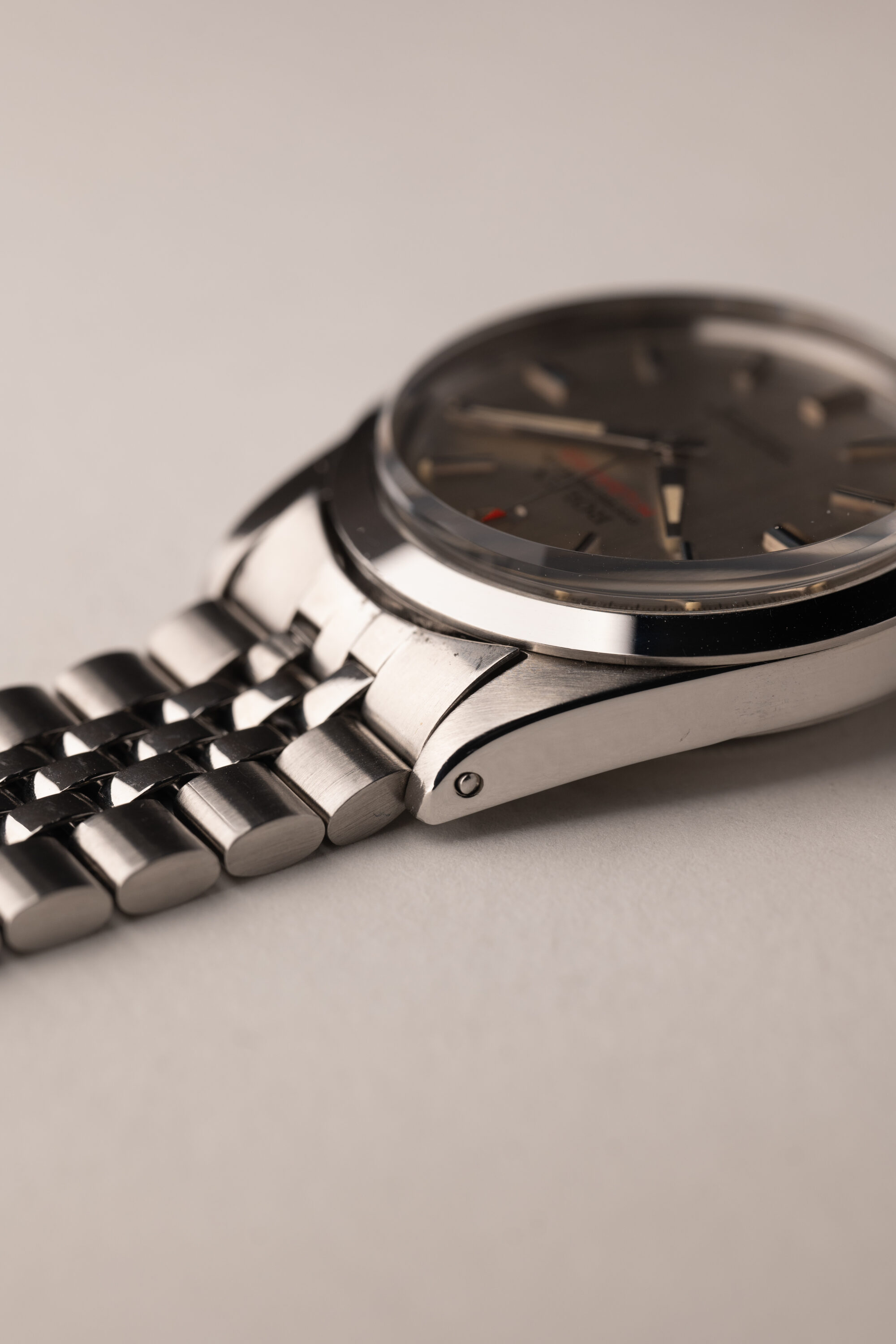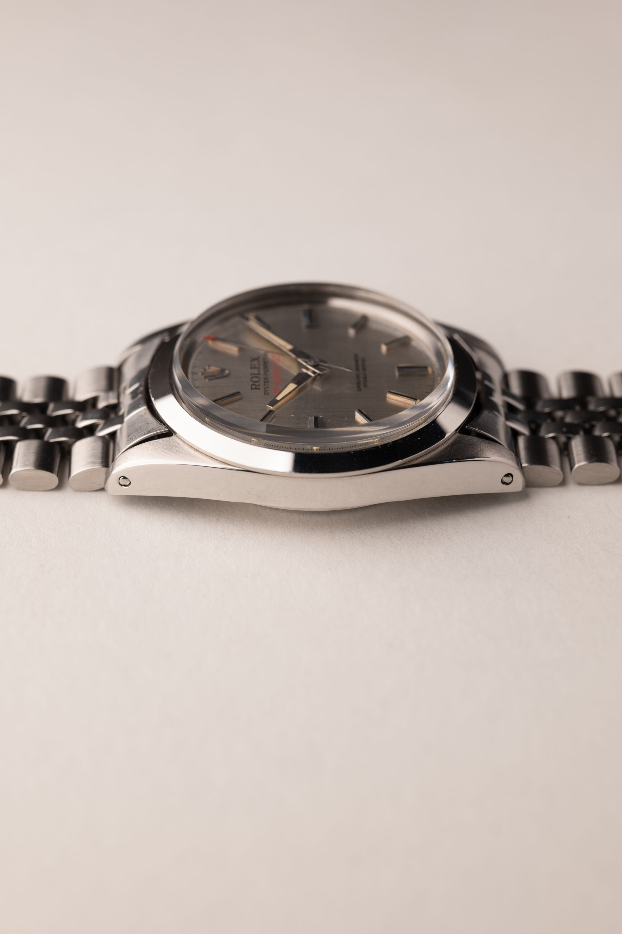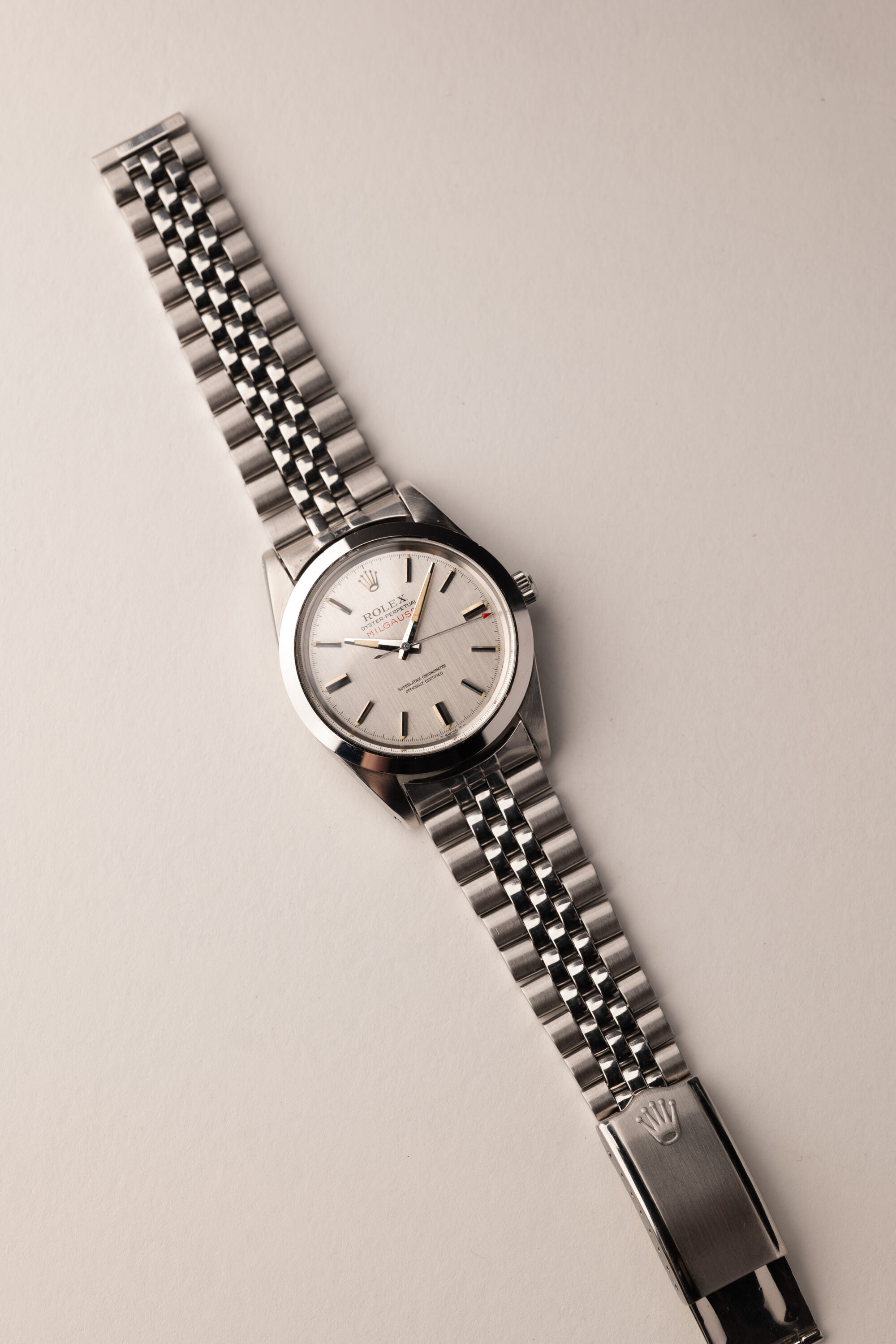 Description: Rolex’s 1019 is a second generation Milgauss, a watch most enthusiasts are very familiar with. Released years after the original 6541, the Milgauss was designed to withstand electromagnetic forces up to 1000 gauss. The watches of engineers, technicians, working with such forces would have their time altered and so Rolex, introducing a Faraday cage, sought to limit such adverse effects. This example has a stunning brushed silver dial with a pop of light yellow lume.