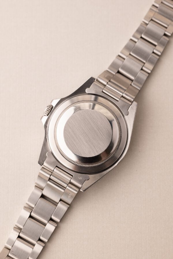 Description: This 16550 which is the first explorer 2 to be housed with a sapphire crystal. It also houses the 3175 movement, shared with the fat lady GMT. Its number markers on the bezel are also much more bold and pronounced than its 16570 counterpart. Are we splitting hairs here? Likely, but that is the exact reason why we collect these vintage watches. This 16550 has polar Chi-Chi Dial, the “Chi-Chi” refers to the extreme yellow coloring present on the hands and dials of this Explorer II. These are one of the most desirable Explorer II’s and have traded at huge premiums comparable to the Panna Cream Explorer II’s. The case has been polished in the past but is thick and even and shows some of its factory beveling. The hands have been color matched to match the dial