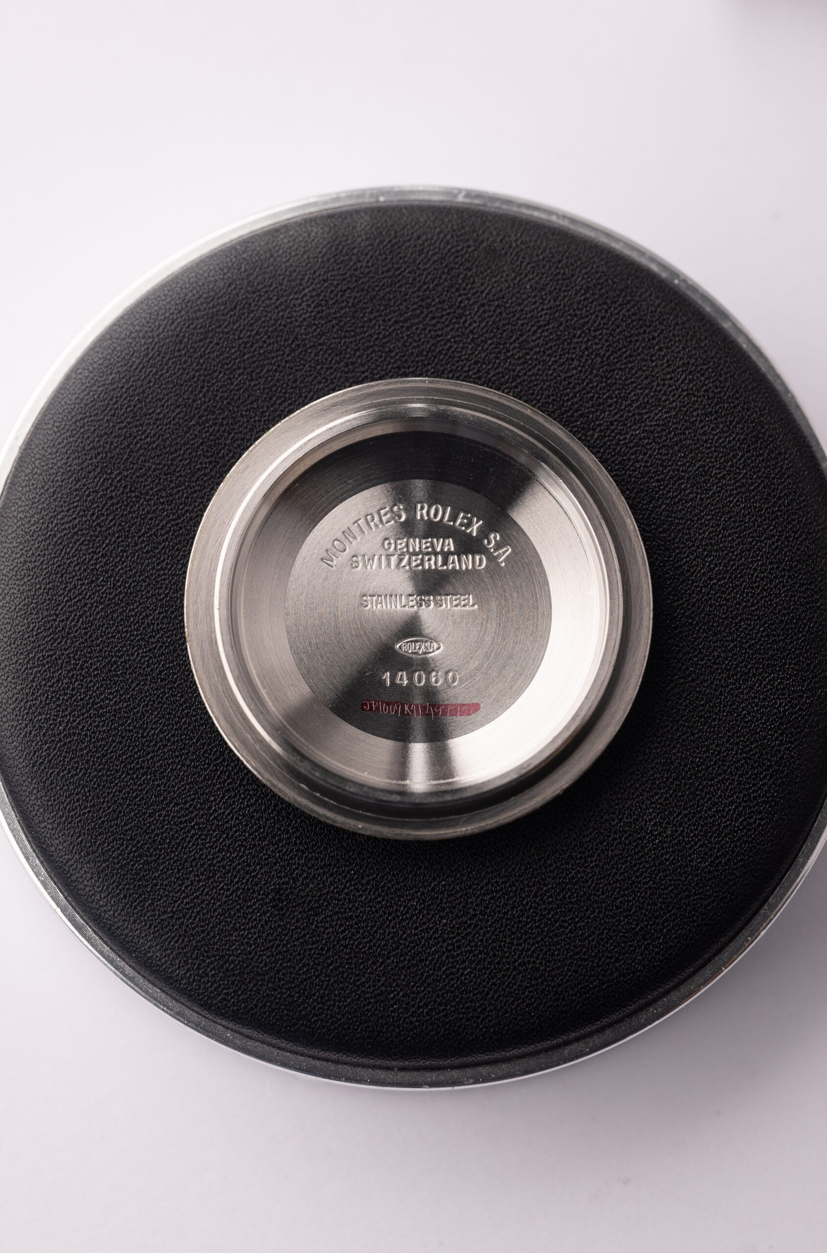 Description: A minimalist neo-vintage tool-watch whose no-date aesthetic mirrors the pure function of Submariner lore. Purists and vintage enthusiasts alike appreciate the 14060 for its symmetrical dial sans date. The dial plots have a light lume coloring on them.