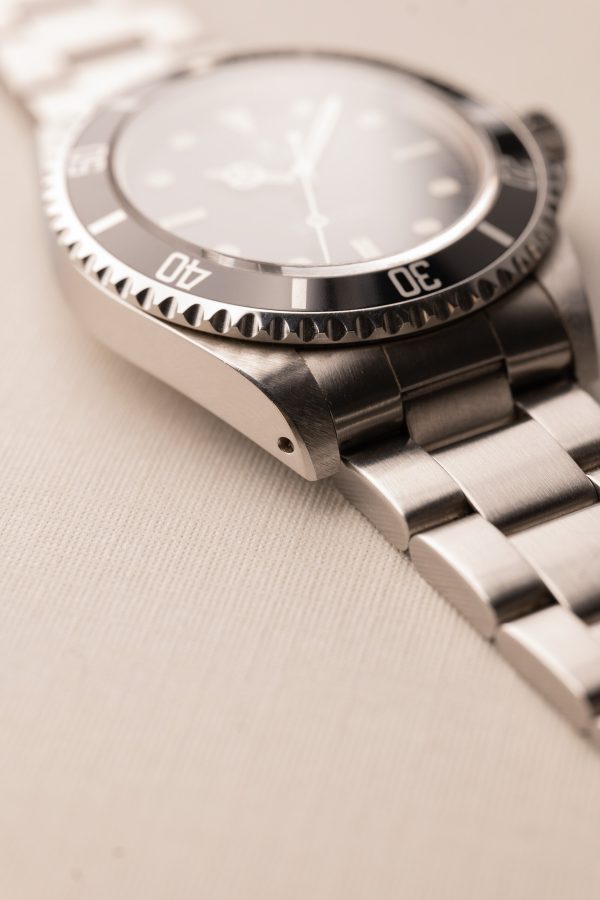Description: A very mint 14060, from the unpolished case to the original case back sticker to the creamy lume this is a excellent example of the 14060. The lume plots pop very nicely in the sun and add a nice color tone to the whole dial. Case appears unpolished and looks great on all sides. Original case back sticker along with the box and paper still alongside the watch.
